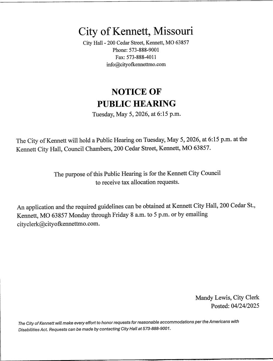 Welcome to City of Kennett City of Kennett....A Great Place to Live!